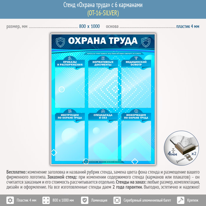 Стенд «Охрана труда» с 6 карманами (OT-16-SILVER) в Ачинске купить