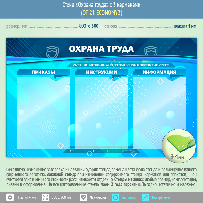 Стенд «Охрана труда» с 3 карманами (OT-21-ECONOMY2) в Ачинске купить