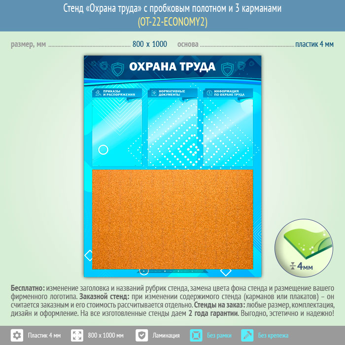 Стенд «Охрана труда» с пробковым полотном и 3 карманами (OT-22-ECONOMY2) в Ачинске купить