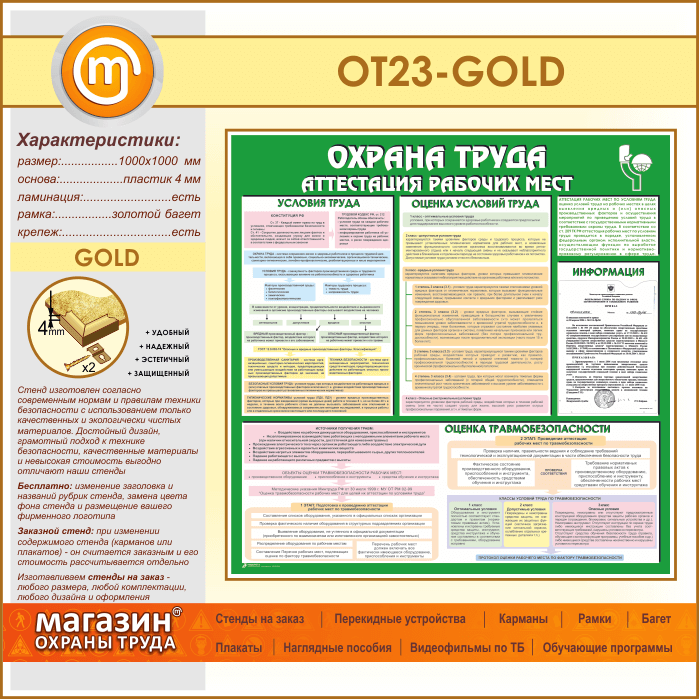 Стенд «Охрана труда. Аттестация рабочих мест» с карманом (OT-23-GOLD) в Ачинске купить