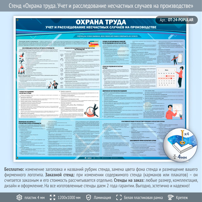 Стенд «Охрана труда. Учет и расследование несчастных случаев на производстве» (OT-24-POPULAR) в Ачинске купить