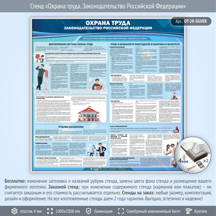 Стенд «Охрана труда. Законодательство Российской Федерации» (OT-28-SILVER) в Ачинске купить
