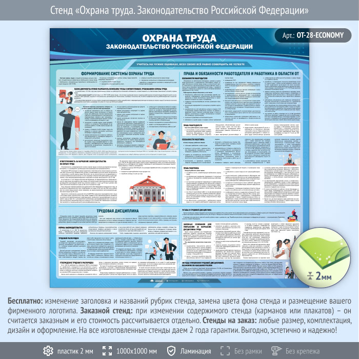 Стенд «Охрана труда. Законодательство Российской Федерации» (OT-28-ECONOMY) в Ачинске купить