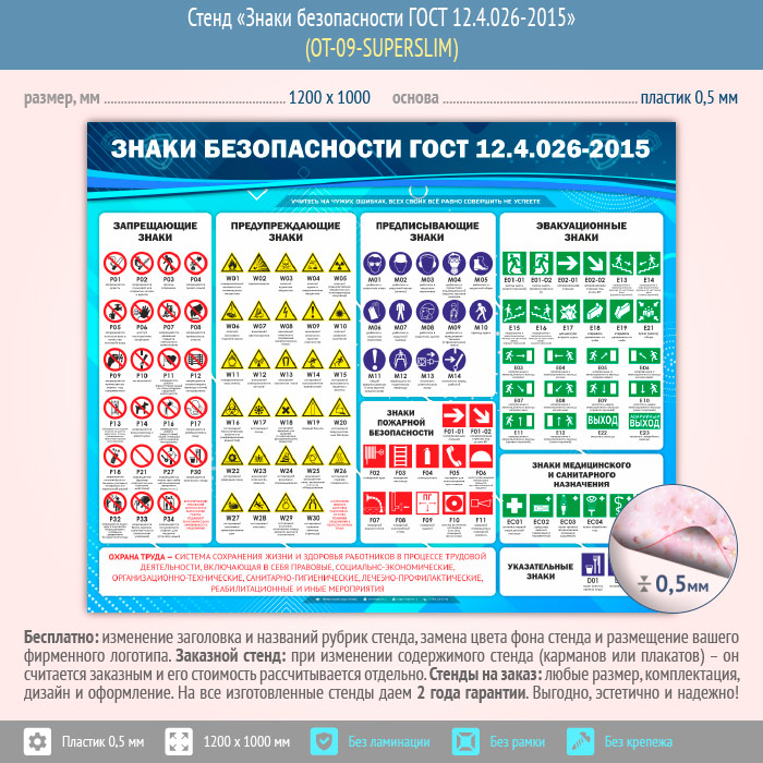 Стенд «Знаки безопасности ГОСТ 12.4.026-2015» (OT-09-SUPERSLIM) в Ачинске купить