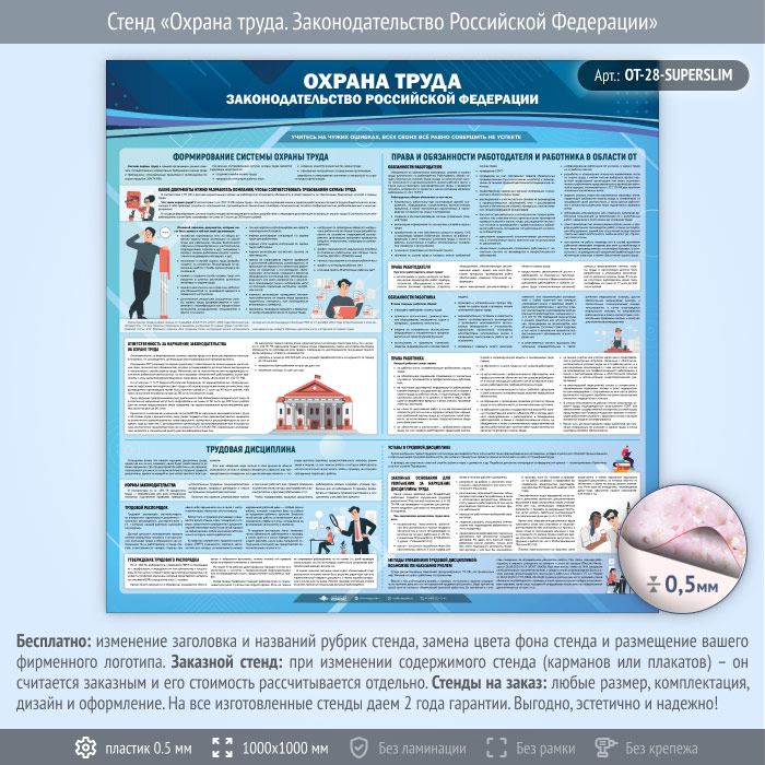 Стенд «Охрана труда. Законодательство Российской Федерации» (OT-28-SUPERSLIM) в Ачинске купить