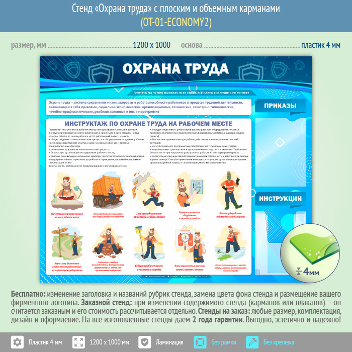 Стенд «Охрана труда» с плоским и объемным карманами (OT-01-ECONOMY2) в Ачинске купить