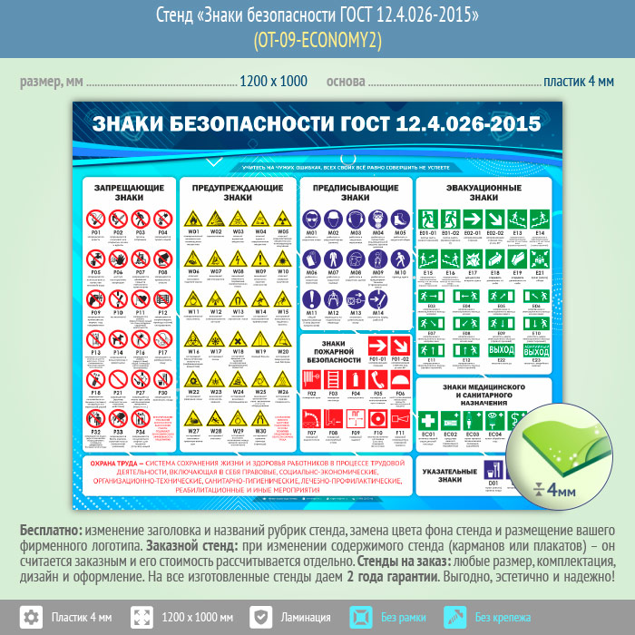 Стенд «Знаки безопасности ГОСТ 12.4.026-2015» (OT-09-ECONOMY2) в Ачинске купить