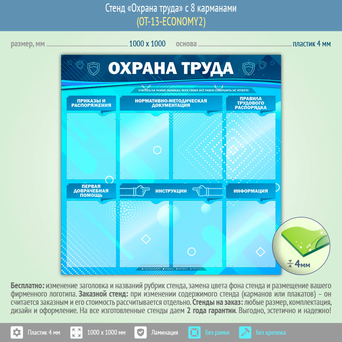 Стенд «Охрана труда» с 8 карманами (OT-13-ECONOMY2) в Ачинске купить