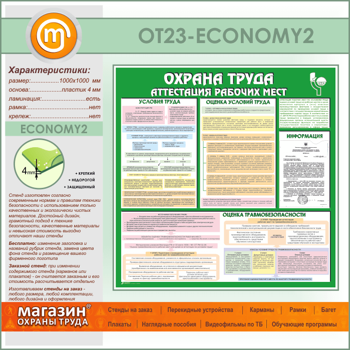 Стенд «Охрана труда. Аттестация рабочих мест» с карманом (OT-23-ECONOMY2) в Ачинске купить