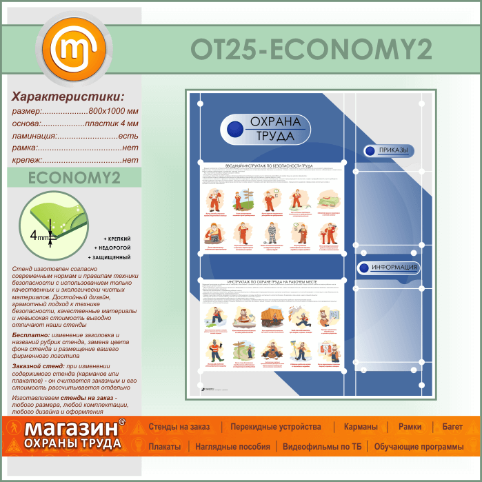 Стенд «Охрана труда» с 2 плоскими карманами (OT-25-ECONOMY2) в Ачинске купить