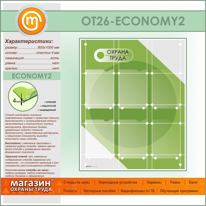 Стенд «Охрана труда» с 6 плоскими карманами (OT-26-ECONOMY2) в Ачинске купить