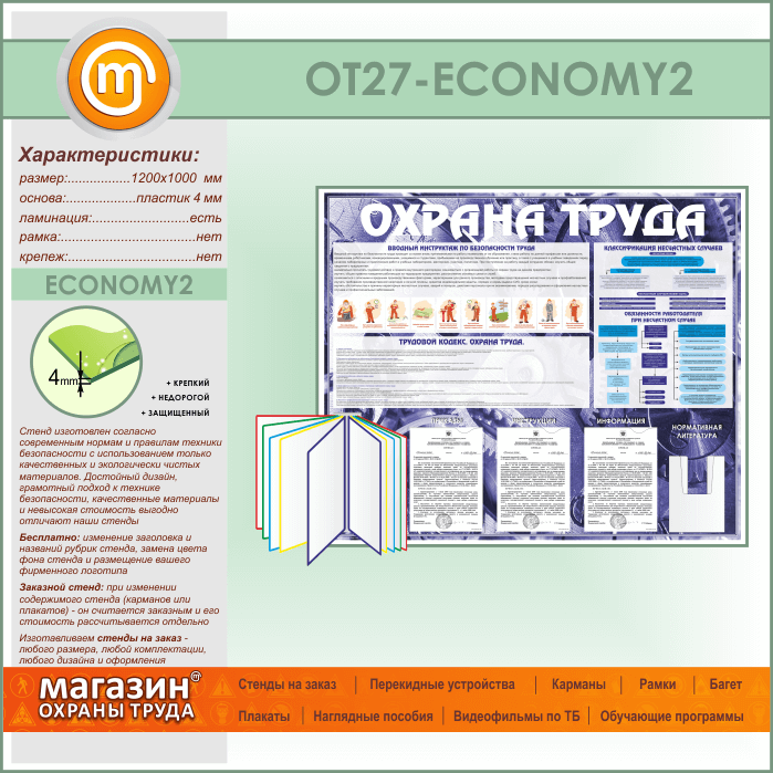 Стенд «Охрана труда» с перекидной системой, 3 плоскими и 1 объемным карманом (OT-27-ECONOMY2) в Ачинске купить