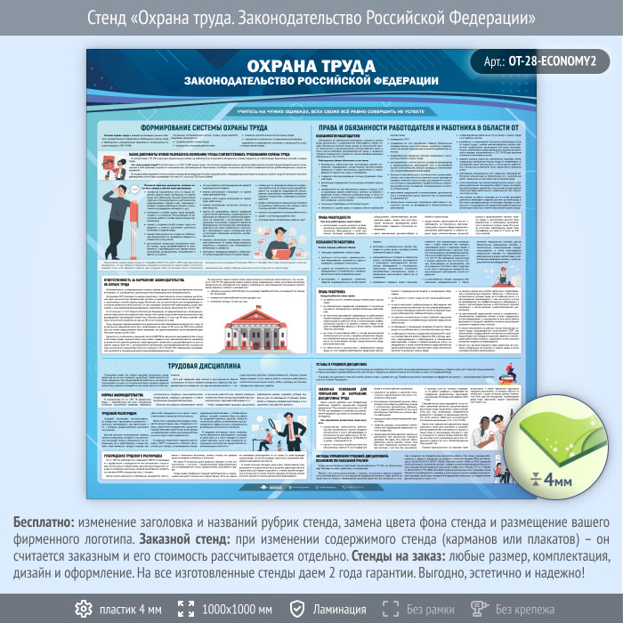 Стенд «Охрана труда. Законодательство Российской Федерации» (OT-28-ECONOMY2) в Ачинске купить