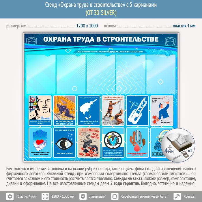 Стенд «Охрана труда в строительстве» с 5 карманами (OT-30-SILVER) в Ачинске купить