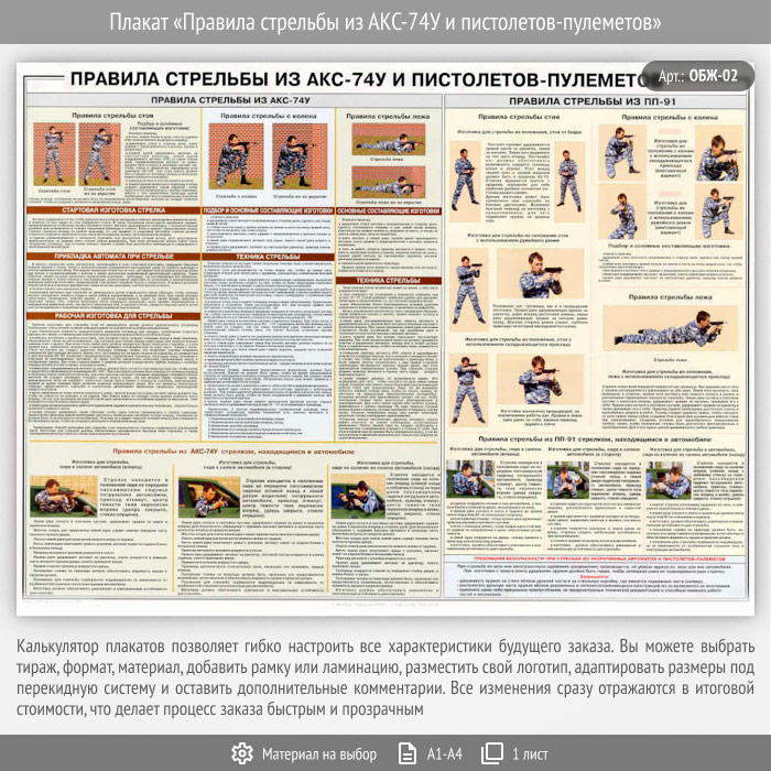 Плакат «Правила стрельбы из АКС-74У и пистолетов-пулеметов» (ОБЖ-02, 1 лист) в Ачинске купить