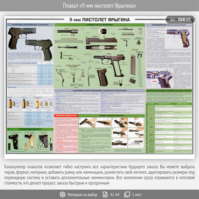 Плакат «9-мм пистолет Ярыгина» (ОБЖ-03, 1 лист) в Ачинске купить