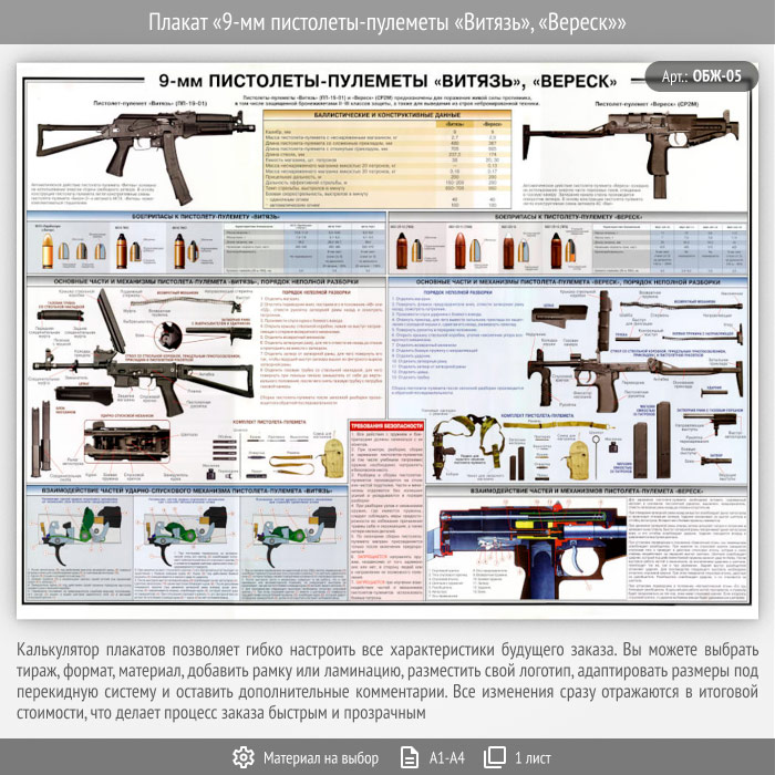 Плакат «9-мм пистолеты-пулеметы «Витязь», «Вереск»» (ОБЖ-05, 1 лист) в Ачинске купить