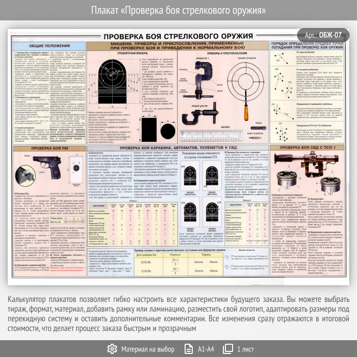 Плакат «Проверка боя стрелкового оружия» (ОБЖ-07, 1 лист) в Ачинске купить