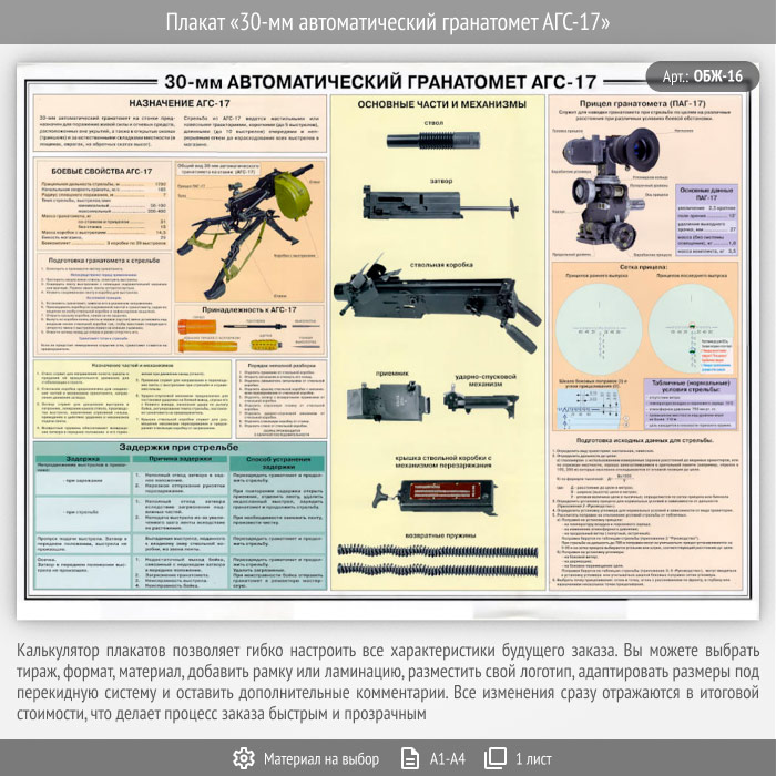 Плакат «30-мм автоматический гранатомет АГС-17» (ОБЖ-16, 1 лист) в Ачинске купить