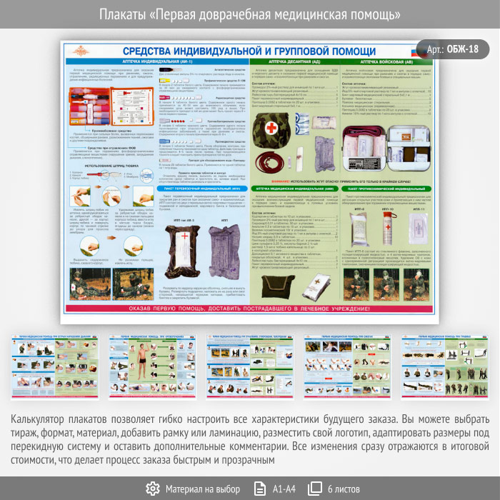 Плакаты «Первая доврачебная медицинская помощь» (ОБЖ-18, 6 листа) в Ачинске купить