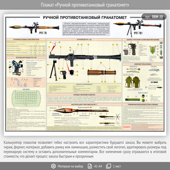 Плакат «Ручной противотанковый гранатомет» (ОБЖ-20, 1 лист) в Ачинске купить