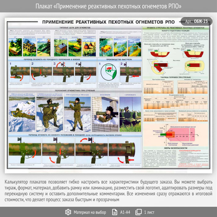 Плакат «Применение реактивных пехотных огнеметов РПО» (ОБЖ-23, 1 лист) в Ачинске купить