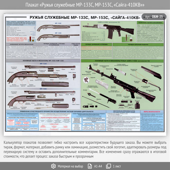Плакат «Ружья служебные МР-133С, МР-153С, «Сайга-410КВ»» (ОБЖ-25, 1 лист) в Ачинске купить