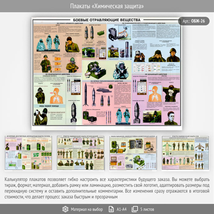 Плакаты «Химическая защита» (ОБЖ-26, 5 листа) в Ачинске купить