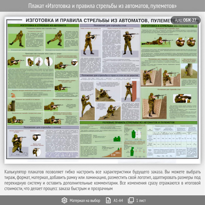 Плакат «Изготовка и правила стрельбы из автоматов, пулеметов» (ОБЖ-27, 1 лист) в Ачинске купить