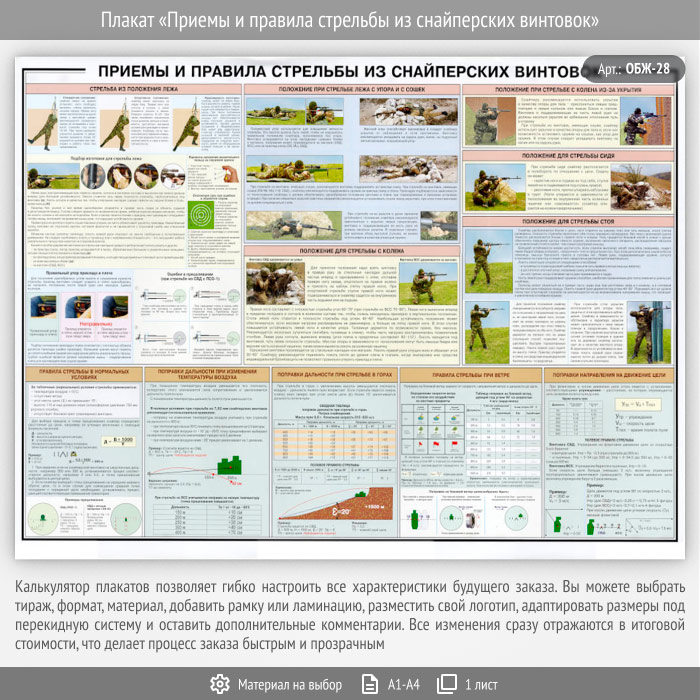 Плакат «Приемы и правила стрельбы из снайперских винтовок» (ОБЖ-28, 1 лист) в Ачинске купить