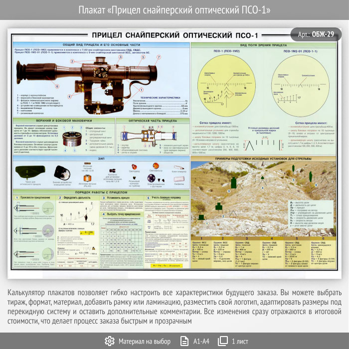 Плакат «Прицел снайперский оптический ПСО-1» (ОБЖ-29, 1 лист) в Ачинске купить