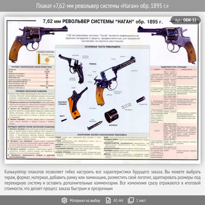 Плакат «7,62-мм револьвер системы «Наган» обр. 1895 г.» (ОБЖ-32, 1 лист) в Ачинске купить