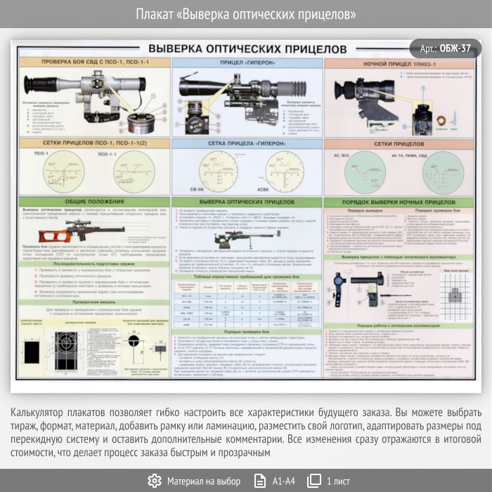 Плакат «Выверка оптических прицелов» (ОБЖ-37, 1 лист) в Ачинске купить