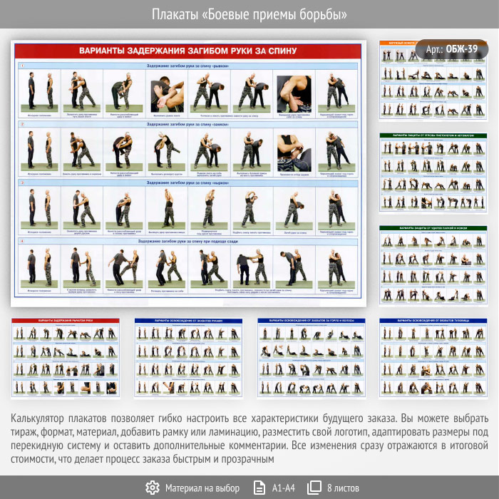 Плакаты «Боевые приемы борьбы» (ОБЖ-39, 8 листа) в Ачинске купить