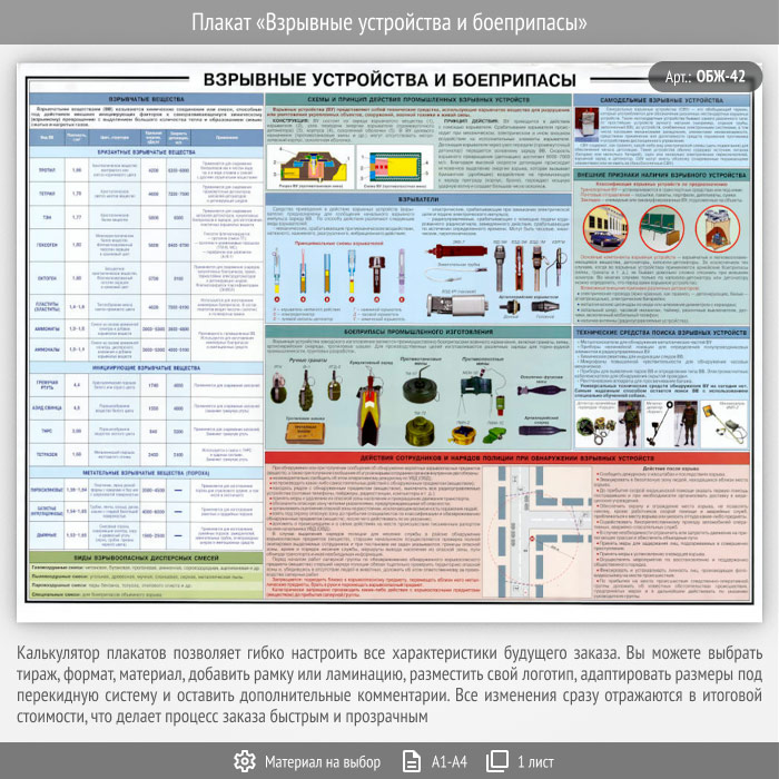 Плакат «Взрывные устройства и боеприпасы» (ОБЖ-42, 1 лист) в Ачинске купить