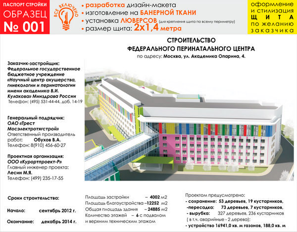 Паспорт стройки, образец № 1 (баннерная ткань, 2000х1400 cм) в Ачинске купить