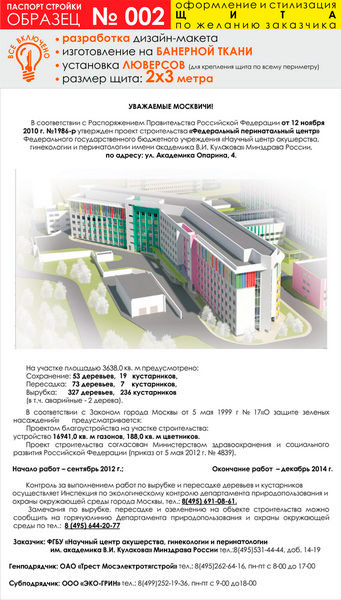 Паспорт стройки, образец № 2 (баннерная ткань, 2000х3000 cм) в Ачинске купить