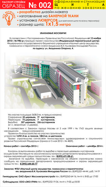 Паспорт стройки, образец № 2 (баннерная ткань, 1000х1500 cм) в Ачинске купить