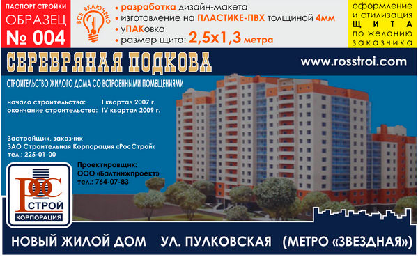 Паспорт стройки, образец № 4 (пластик 4 мм, 2500х1300 cм) в Ачинске купить