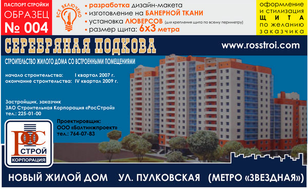 Паспорт стройки, образец № 4 (баннерная ткань, 6000х3000 cм) в Ачинске купить