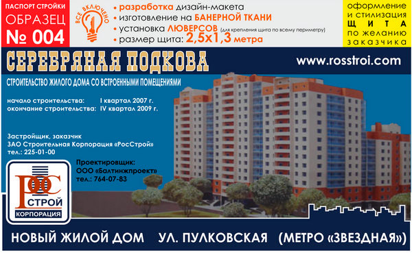 Паспорт стройки, образец № 4 (баннерная ткань, 2500х1300 cм) в Ачинске купить