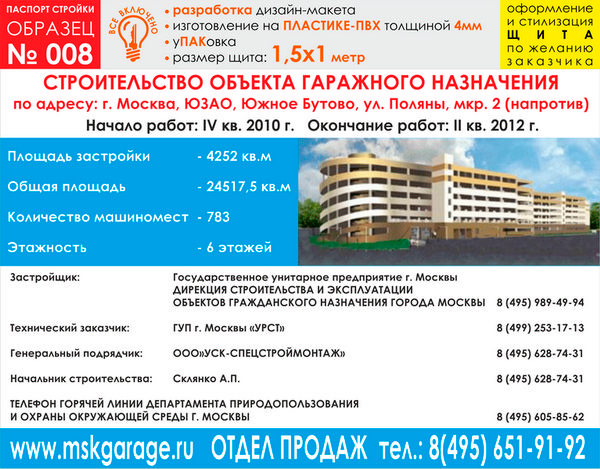 Паспорт стройки, образец № 8 (пластик 4 мм, 1500х1000 cм) в Ачинске купить