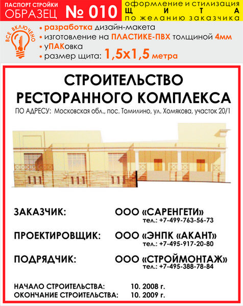 Паспорт стройки, образец № 10 (пластик 4 мм, 1500х1500 cм) в Ачинске купить
