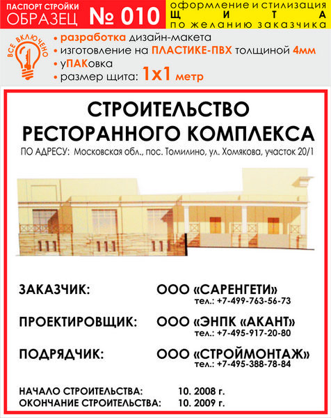 Паспорт стройки, образец № 10 (пластик 4 мм, 1000х1000 cм) в Ачинске купить