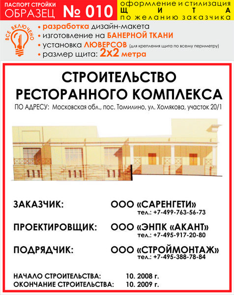Паспорт стройки, образец № 10 (баннерная ткань, 2000х2000 cм) в Ачинске купить