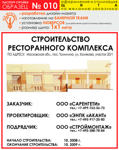 Паспорт стройки, образец № 10 (баннерная ткань, 1000х1000 cм) в Ачинске купить