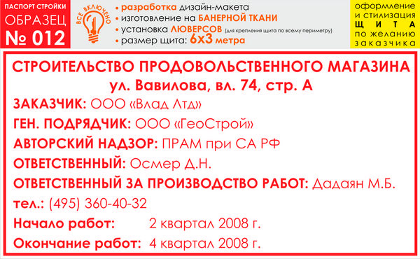 Паспорт стройки, образец № 12 (баннерная ткань, 6000х3000 cм) в Ачинске купить