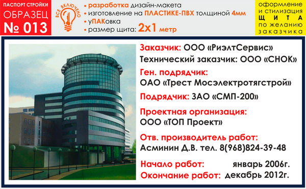 Паспорт стройки, образец № 13 (пластик 4 мм, 2000х1000 cм) в Ачинске купить