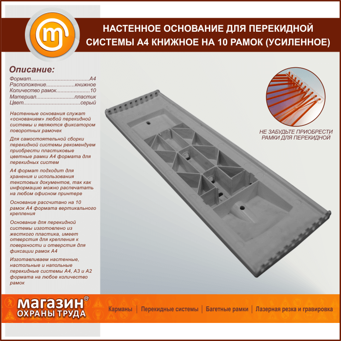 Настенное основание для перекидной системы А4 книжное на 10 рамок (усиленное) в Ачинске купить