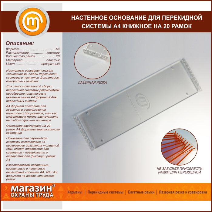Настенное основание для перекидной системы А4 книжное на 20 рамок (оргстекло) в Ачинске купить